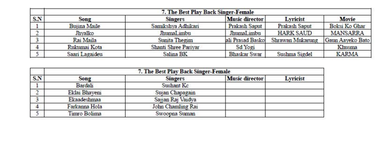 कुम सागर र सुशान्त केसीले यसपटक सबैभन्दा बढी -दुई–दुई विधामा मनोनयनमा पर्न सफल भएका छन् । अवार्ड समारोह असार २८ गते ललितपुरको गोदावरीस्थित सनराइज सम्मेलन केन्द्रमा आयोजना हुँदैछ ।