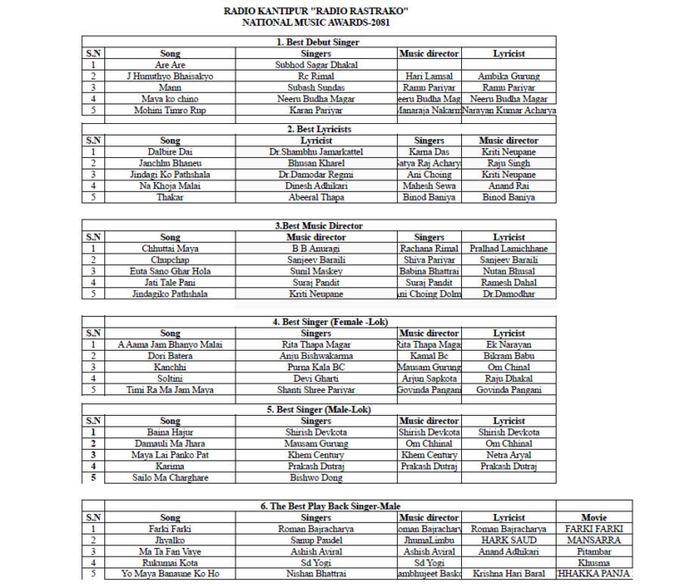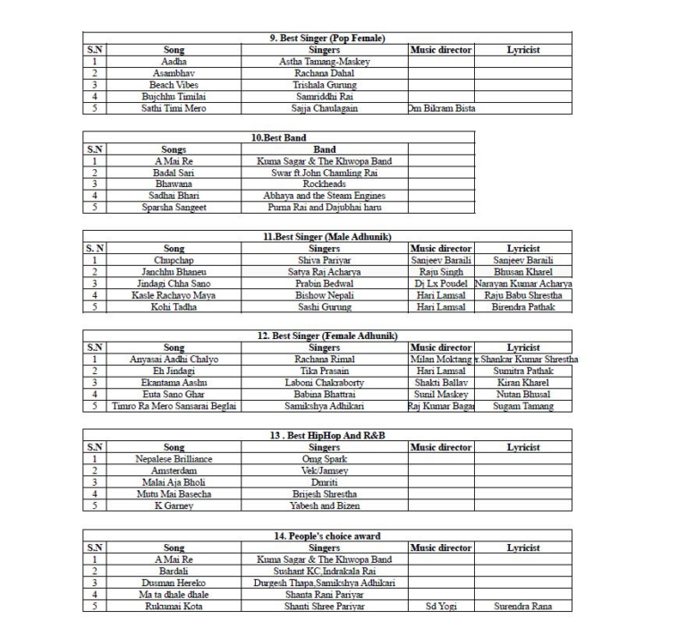 नेशनल म्युजिक अवार्ड्स ८ को नोमिनेशन सार्वजनिक, असार २८ गते गोदावरीमा अवार्ड समारोह