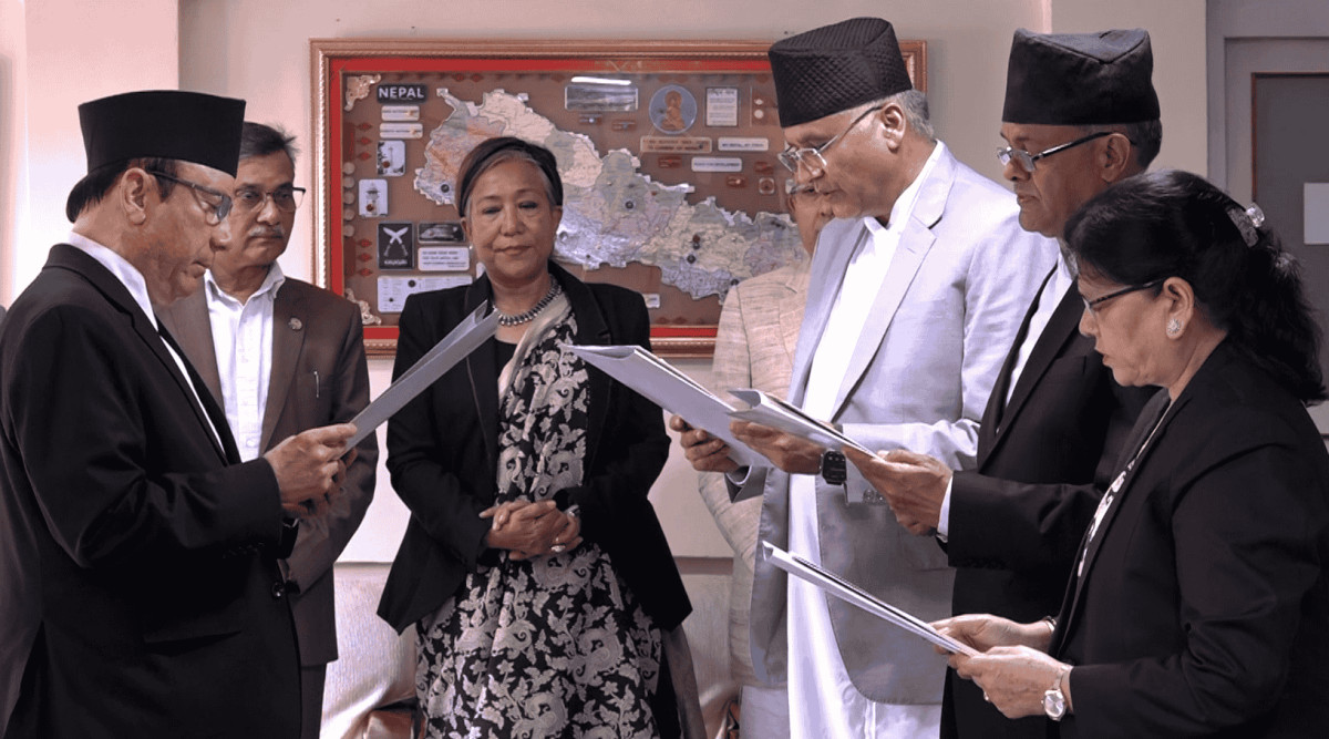 सर्वोच्च अदालतको न्यायाधीशमा नियुक्त मेघराज पोखरेल, श्रीकान्त पौडेल र शान्तिसिंह थापाले मंगलबार प्रधानन्यायाधीश प्रकाशमान सिंह राउतसमक्ष पद तथा गोपनीयताको शपथ ग्रहण गरेका हुन् ।