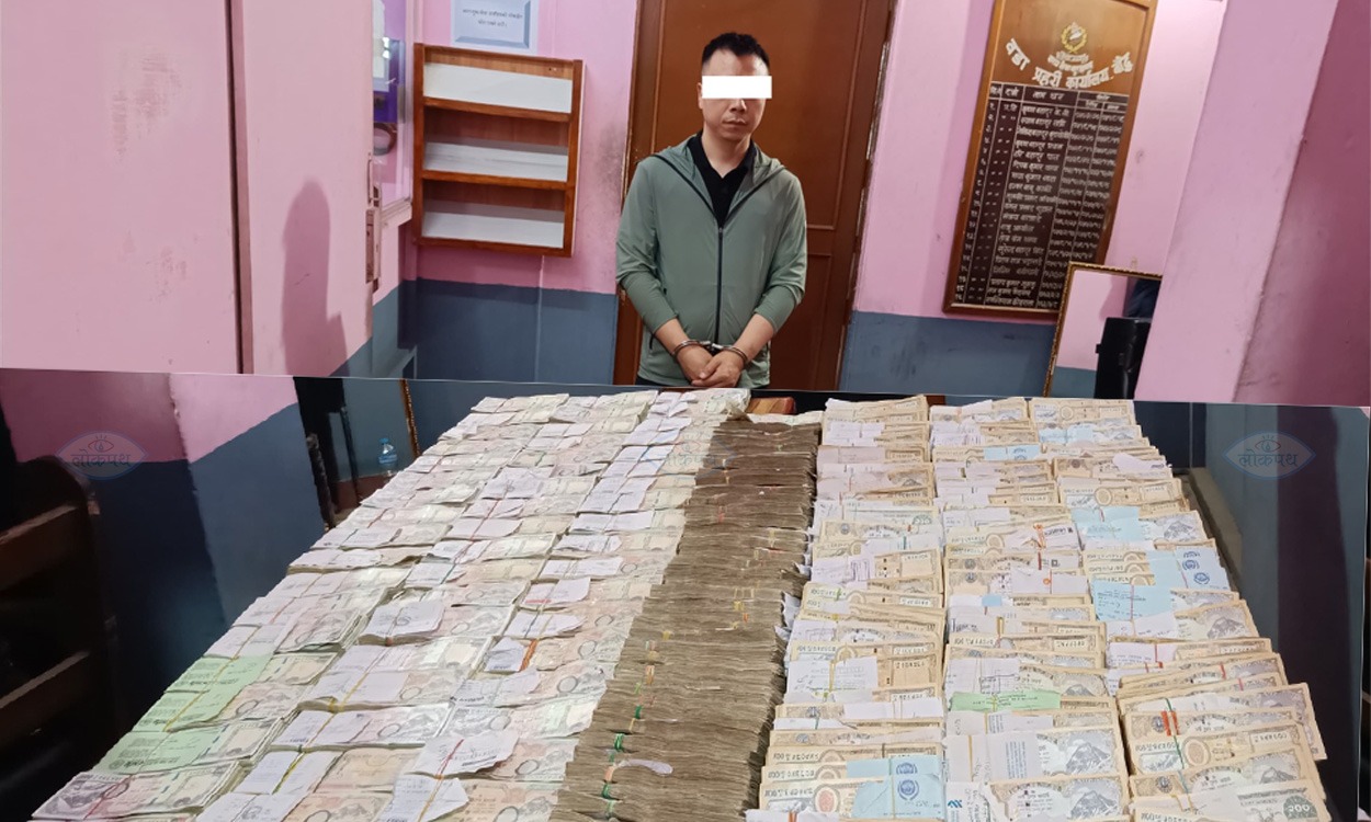 जिल्ला प्रहरी परिसर काठमाडौंका प्रवक्ता एसपी अपिलराज बोहराका अनुसार असार २३ गते राति अन्दाजी १० बजेको प्रहरीले छापा मारी स्रोत नखुलेको रकमसहित एक चिनियाँ नागरिकलाई नियन्त्रणमा लिएको हो ।