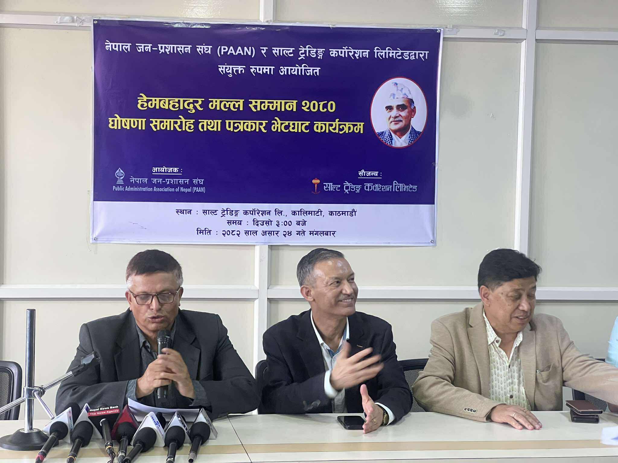 नेपाल जनप्रशासन संघ र साल्ट ट्रेडिङ कर्पोरेशन लिमिटेडको संयुक्त आयोजनामा श्रेष्ठलाई सम्मान गर्न लागिएको हो ।