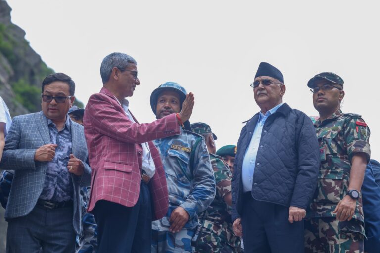 काठमाडौं । प्रधानमन्त्री केपी शर्मा ओलीसहित सरकारी टोलीले रसुवास्थित भोटेकोशी नदीमा आएको बाढीका कारण भएको धनजनको क्षतिको स्थलगत अवलोकन गरी फर्किएको छ ।