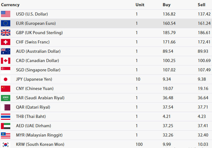 जापानी येन १० को खरिददर नौ रुपैयाँ ३४ पैसा र बिक्रीदर नौ रुपैयाँ ३८ पैसा, चिनियाँ युआन एकको खरिददर १९ रुपैयाँ ०७ पैसा र बिक्रीदर १९ रुपैयाँ १६ पैसा, साउदी अरेबियन रियाल एकको खरिददर ३६ रुपैयाँ ४८ पैसा र बिक्रीदर ३६ रुपैयाँ ६४ पैसा, कतारी रियाल एकको खरिददर ३७ रुपैयाँ ५४ पैसा र बिक्रीदर ३७ रुपैयाँ ७१ पैसा कायम भएको छ ।
