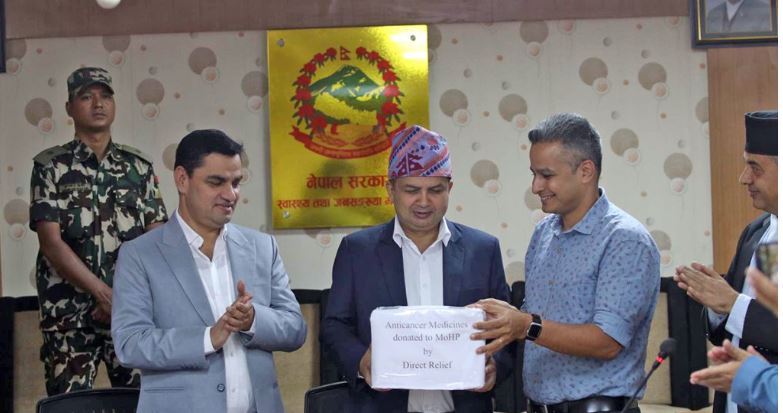 अमेरिकास्थित अन्तर्राष्ट्रिय गैरसरकारी संस्था ‘डाइरेक्ट रिलिफ’ को सहयोग तथा ‘वान हार्ट वर्ल्डवाइड’ को समन्वयमा औषधिसहितका सामग्रीहरू आज मन्त्रालयलाई हस्तान्तरण गरिएको हो ।
