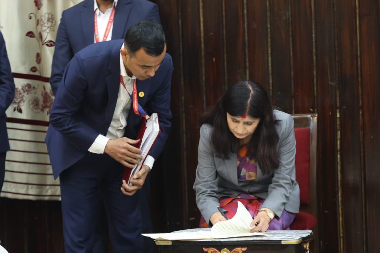 काठमाडौं । नवनियुक्त संघीय मामिला तथा सामान्य प्रशासनमन्त्री भगवती न्यौपानेले शपथग्रहण गरेकी छन् ।