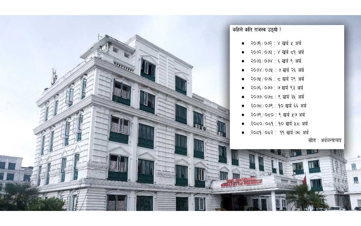 अर्थ मन्त्रालयका अनुसार गत आर्थिक वर्ष २०८१/८२ मा सरकारले ११ खर्ब ७८ अर्ब ८२ करोड राजस्व संकलन गरेको छ । चालु खर्च, पुँजीगत र वित्तीय व्यवस्था खर्चबापत सो आर्थिक वर्षमा १५ खर्ब २३ अर्ब १४ करोड खर्च भएको छ ।