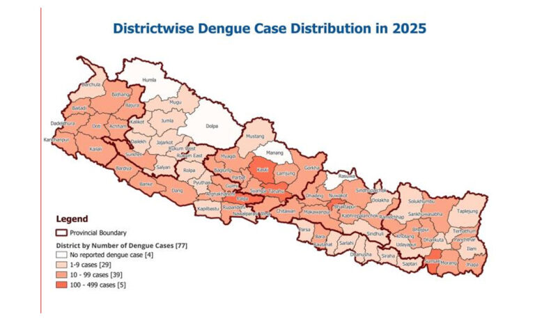 सन् २०२५ को सुरुवात अर्थात् गत पुसको मध्यदेखि हालसम्मको अवधिमा देशका ७३ जिल्लामा डेंगु संक्रमण देखिइसकेको छ ।