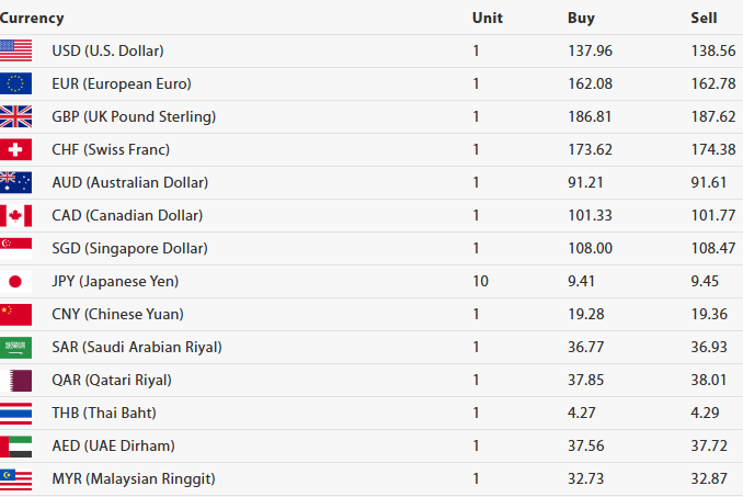 अष्ट्रेलियन डलर एकको खरिददर ९१ रूपैयाँ २१ पैसा र बिक्रीदर ९१ रूपैयाँ ६१ पैसा , क्यानेडियन डलर एकको खरिददर १०१ रूपैयाँ ३३ पैसा र बिक्रीदर १०१ रूपैयाँ ७७ पैसा, सिङ्गापुर डलर एकको खरिददर १०८ रूपैयाँ र बिक्रीदर १०८ रूपैयाँ ४७ पैसा तोकिएको छ ।