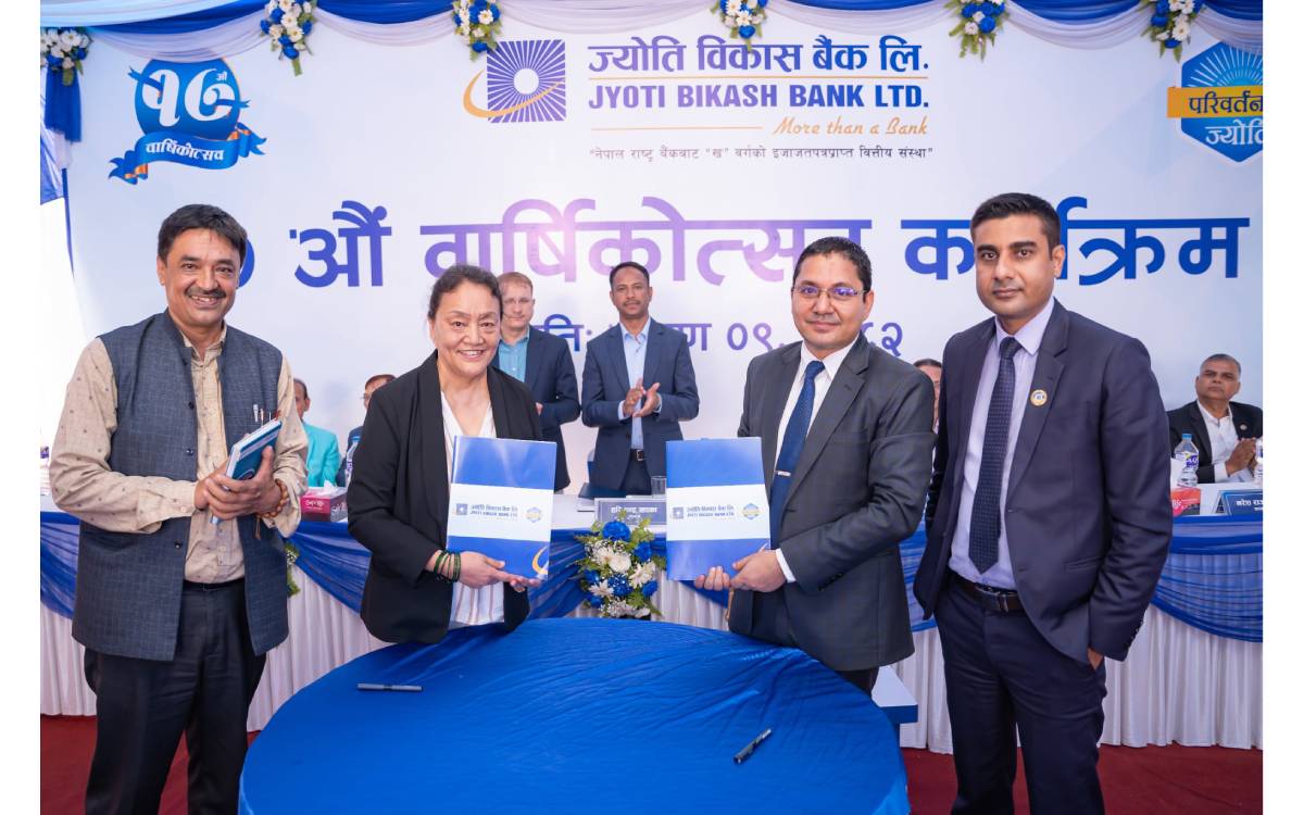 काठमाडौं । ज्योति विकास बैंक लिमिटेडले विविध कार्यक्रमसहित आफ्नो १७औँ वार्षिकोत्सव सम्पन्न गरेको छ । बैंकले आज १७ वर्षको यात्रा पूरा गरी १८औँ वर्षमा प्रवेश गरेको हो ।