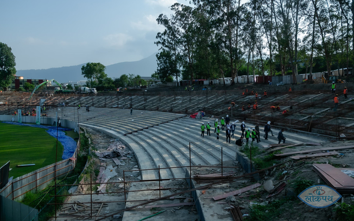 समितिका सभापति ठाकुरप्रसाद गैरेका अनुसार मैदानमा हाल स्तरोन्नति, प्यारापिट निर्माण र फ्लड लाइट जडानको काम भइरहेका छन् । तर तोकिएको समयमा काम नसकिएकाले निर्माण कम्पनीलाई हर्जाना लागिरहेको र हाल काम तीव्र गतिमा भइरहेको उनले बताए ।