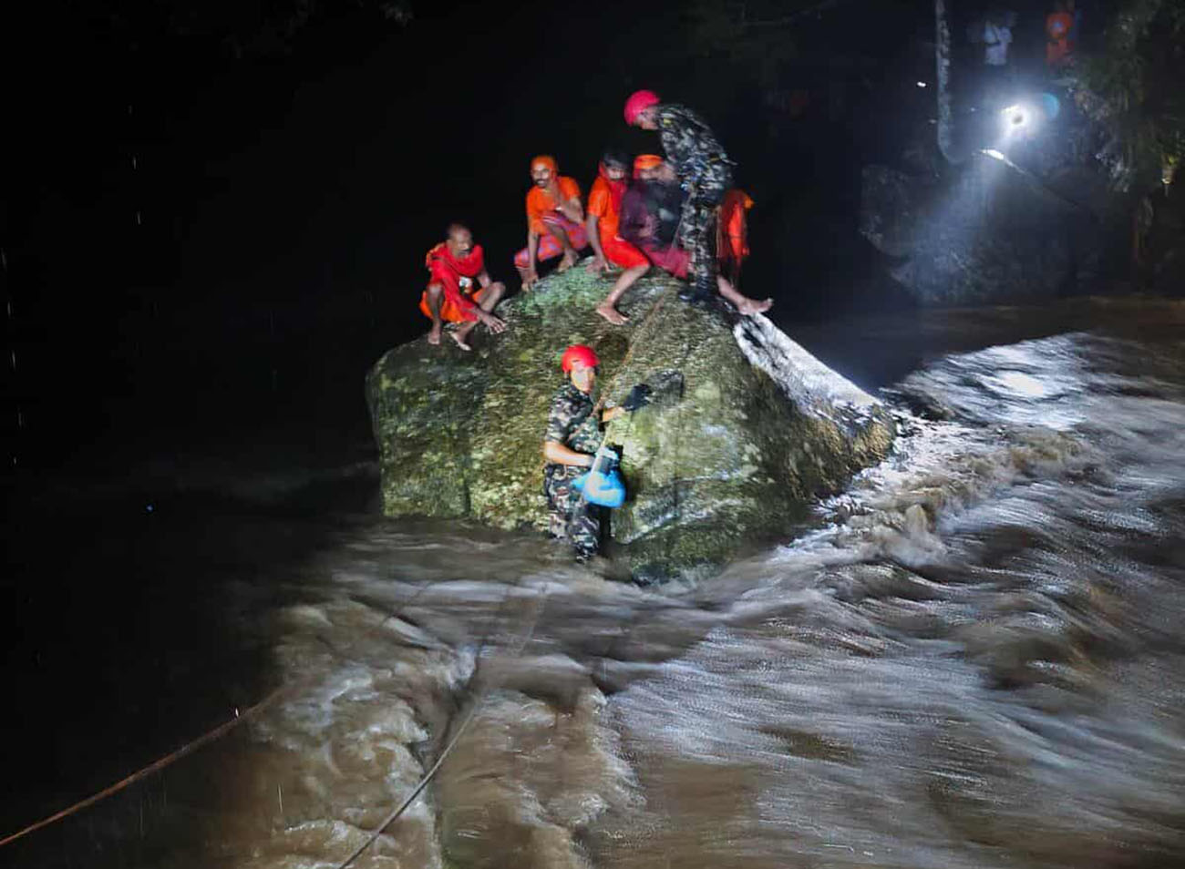 काठमाडौंको गोकर्णेश्वर नगरपालिका–१ सुन्दरीजलस्थित सुन्दरीमाई मन्दिरनजिक आज बिहान साढे २ बजे चार भारतीय र एक नेपाली खोलामा नुहाउने क्रममा एक्कासि खोलाको बहाव बढेपछि बिचमा फसेका थिए । उनीहरूलाई चन्दननाथ गणबाट खटिएको सेनाको उद्धार टोलीसहित अन्य सुरक्षा निकाय र स्थानीयको सहयोगमा सकुशल उद्धार गरिएको नेपाली सेनाले जनाएको छ ।