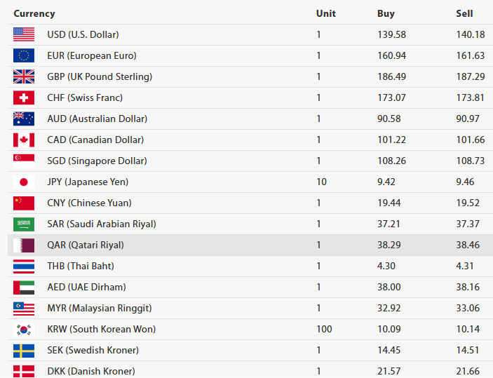 राष्ट्र बैंकका अनुसार आजका लागि अमेरिकी डलर एकको खरिददर १३९ रुपैयाँ ५८ पैसा र बिक्रीदर १४० रुपैयाँ १८ पैसा निर्धारण गरिएको छ ।