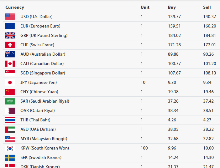 केन्द्रीय बैंकका अनुसार थाइ भाट एकको खरिददर चार रुपैयाँ २६ पैसा र बिक्रीदर चार रुपैयाँ २७ पैसा, युएई दिराम एकको खरिददर ३८ रुपैयाँ ०५ पैसा र बिक्रीदर ३८ रुपैयाँ २२ पैसा, मलेसियन रिङ्गेट एकको खरिददर ३२ रुपैयाँ ६८ पैसा र बिक्रीदर ३२ रुपैयाँ ८२ पैसा, साउथ कोरियन वन १०० को खरिददर नौ रुपैयाँ ९६ पैसा र बिक्रीदर १० रुपैयाँ, स्वीडिस क्रोनर एकको खरिददर १४ रुपैयाँ २४ पैसा र बिक्रीदर १४ रुपैयाँ ३० पैसा र डेनिस क्रोनर एकको खरिददर २१ रुपैयाँ ३७ पैसा र बिक्रीदर २१ रुपैयाँ ४७ पैसा तोकिएको छ ।