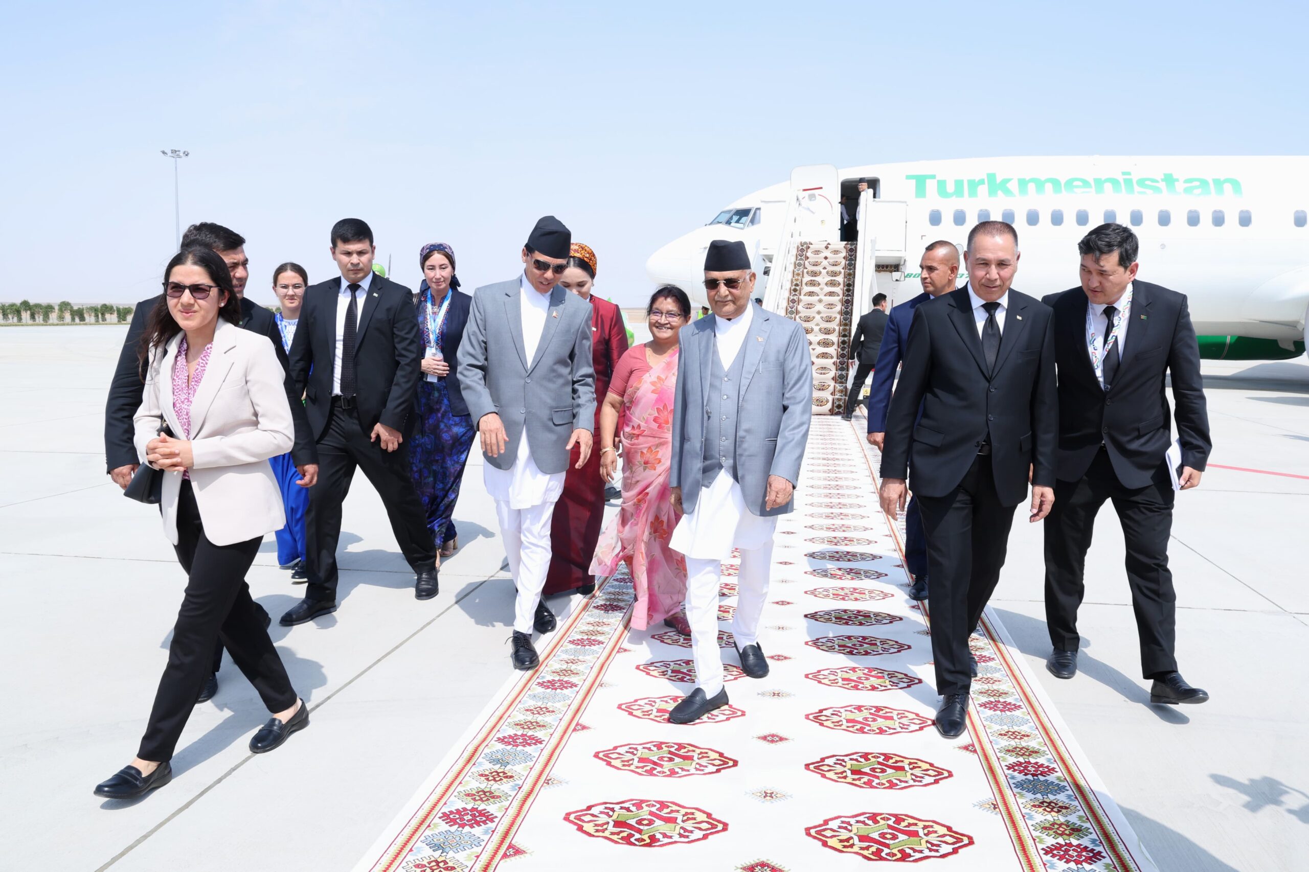 काठमाडौं । प्रधानमन्त्री केपी शर्मा ओलीसहितको प्रतिनिधिमण्डलको टोली तुर्कमेनिस्तान पुगेको छ ।