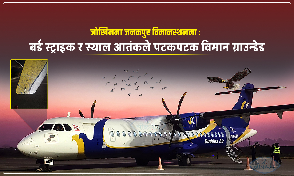 जनकपुर विमानस्थलमा मंगलबार र बुधबार साँझ समेत विमानमा चरा ठोक्किँदा बुद्ध एयरका दुई विमान ग्राउन्डेड भएका छन् । विमानमा चरा ठोक्किएपछि त्यसको पूर्णरुपमा मर्मत वा चेकजाँच नगरी विमान उडाउन नमिल्ने भएको कारणले बुद्धका दुई विमान दुई पटक ग्राउन्डेड भएका छन् ।