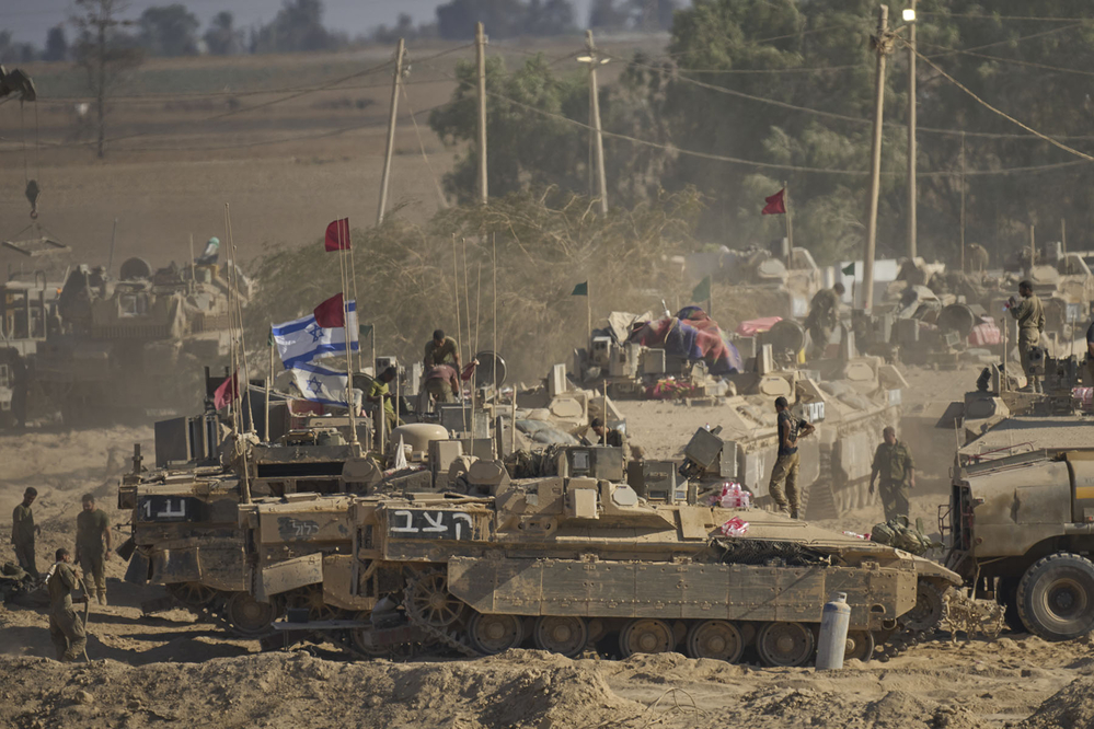 Israeli soldiers are seen near the Gaza Strip border in southern Israel, Wednesday, Aug. 6, 2025. (AP Photo/Ohad Zwigenberg)