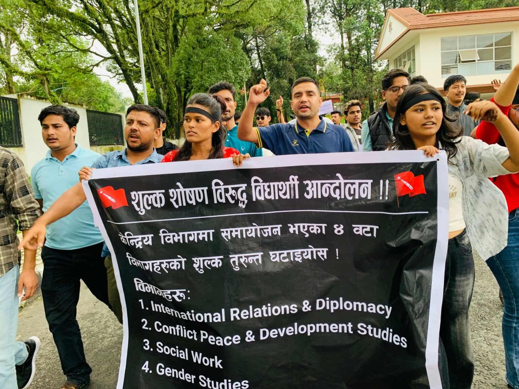 विद्यार्थी संगठनले ९ महिना अघि अन्तर्राष्ट्रिय सम्बन्ध, द्वन्द्व र शान्ति, सामाजिक कार्य तथा लैङ्गिकता सम्बन्धी अध्ययन कार्यक्रमलाई केन्द्रीय विभागमा गाभिए पनि शुल्क पुरानै दरमा असुलिएको गुनासो गरेको छ ।