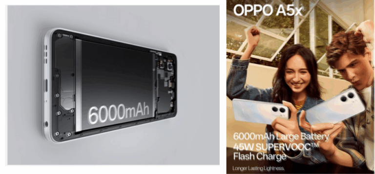 नयाँ ओप्पो ए फाईब एक्सले IP65 स्तरको पानी र धूलो प्रतिरोध, र ६,०००mAh क्षमताको लामो समयसम्म टिक्ने ब्याट्रीसहितको यो फोन कठिन परिस्थितिमा पनि भरपर्दो रहने दाबी गरिएको छ।