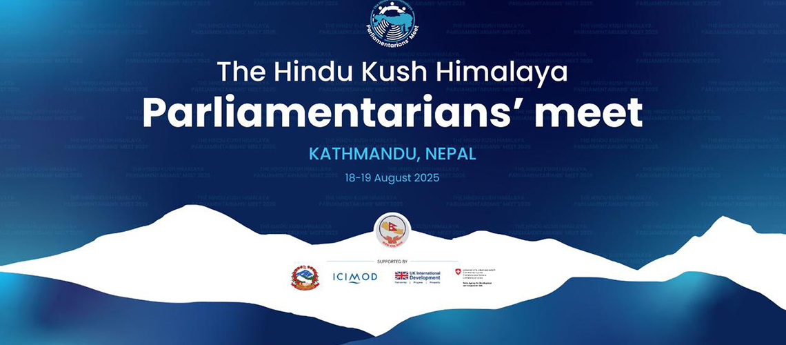 काठमाडौं । ‘हिन्दुकुश हिमालय क्षेत्र’मा पर्ने मुलुकका संसद्बीच साझा धारणा, संवाद र समन्वयका लागि हुन लागेको ‘हिन्दुकुश हिमालय संसदीय बैठक’आजदेखि यहाँ सुरु हुँदैछ। हिन्दुकुश क्षेत्रका मुुलुकका संसद्बीच नीति तथा कानुन निर्माण र दिगो विकासमा ज्ञान, सीप तथा नवीन धारणालाई आदानप्रदान गर्ने उद्देश्यले आयोजित सो बैठकको संयोजक संघीय संसद्, कृषि सहकारी तथा प्राकृतिक स्रोत समितिले गरेको हो ।