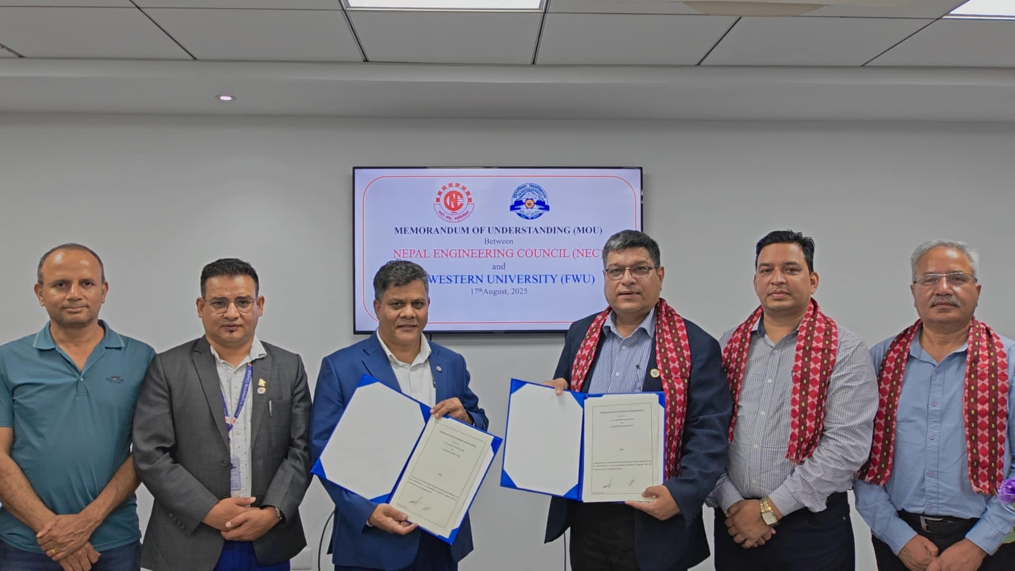 काठमाडौं । सुदूरपश्चिम विश्वविद्यालय र नेपाल इन्जिनियरिङ परिषद् बिच विश्वविद्यालयबिच समझदारी भएको छ।