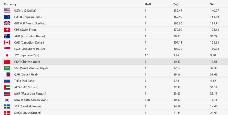 अष्ट्रेलियन डलर एकको खरिददर ९० रुपैयाँ ८३ पैसा र बिक्रीदर ९१ रुपैयाँ २२ पैसा, क्यानेडियन डलर एकको खरिददर १०१ रुपैयाँ ११ पैसा र बिक्रीदर १०१ रुपैयाँ ५५ पैसा, सिङ्गापुर डलर एकको खरिददर १०८ रुपैयाँ ७६ पैसा र बिक्रीदर १०९ रुपैयाँ २३ पैसा निर्धारण गरिएको छ ।