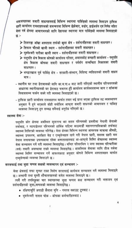 भक्तजनले बिहान ३ बजेदेखि नै दर्शन गर्न सक्नेछन् । दर्शनका क्रममा सुरक्षाका लागि नेपाल प्रहरी, सशस्त्र प्रहरी, आवश्यकताअनुसार नेपाली सेना तथा सादा पोसाकका सुरक्षाकर्मी समेत खटाइने कोषले जनाएको छ ।