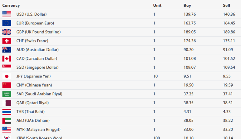 काठमाडौं । नेपाल राष्ट्र बैंकले आजका लागि विदेशी मुद्राको विनिमय दर निर्धारण गरेको छ । राष्ट्र बैंककाअनुसार अमेरिकी डलर एकको खरिददर १३९ रुपैयाँ ७६ पैसा र बिक्रीदर १४० रुपैयाँ ३६ पैसा कायम भएको छ ।
