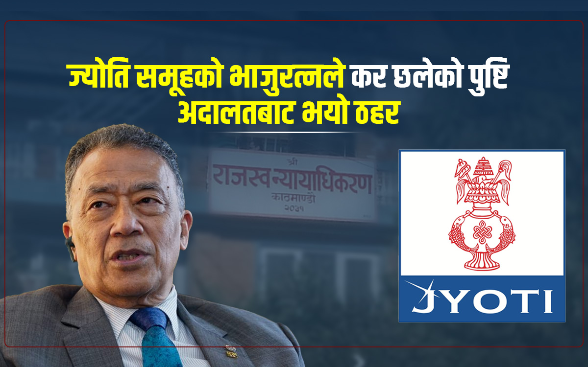 ज्योति समूहका रूप ज्योतिको कम्पनी भाजुरत्न सेल्स एन्ड इन्जिनियरिङले मुख्यतः ट्र्याक्टर र मोटरसाइकलको खरिद विक्री गर्ने गर्छ । सोही कम्पनीले आर्थिक वर्ष २०७३।०७४ को आयकर छली गरेको भन्दै भएको कर निर्धारण र पुनरावेदनमा अदालतले कर छली भएको ठहर गरेको हो ।