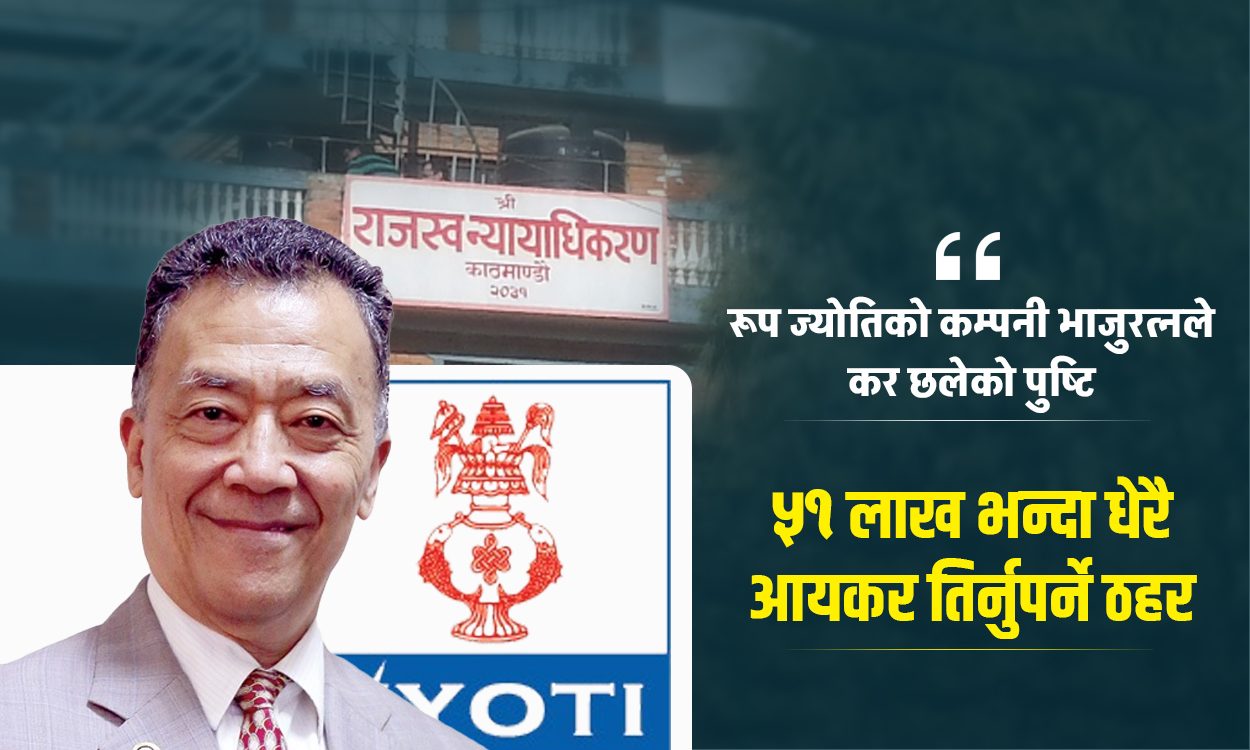 ज्योति समूहका रूप ज्योतिको कम्पनी भाजुरत्न सेल्स एन्ड इन्जिनियरिङले मुख्यतः ट्र्याक्टर र मोटरसाइकलको खरिद विक्री गर्ने गर्छ । सोही कम्पनीले आर्थिक वर्ष २०७३।०७४ को आयकर छली गरेको भन्दै भएको कर निर्धारण र पुनरावेदनमा अदालतले कर छली भएको ठहर गरेको हो ।