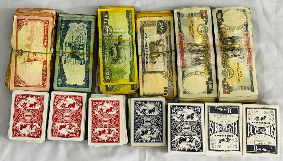 उनीहरुको साथबाट २ लाख २१ हजार १ सय ४५ रुपैयाँ नगद र १० बुक तास समेत बरामद भएको छ ।