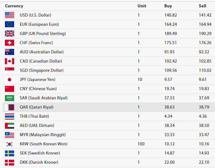 काठमाडौं । नेपाल राष्ट्र बैंकले आइतबारका लागि विदेशी मुद्राको विनिमयदर निर्धारण गरेको छ । राष्ट्र बैंकका अनुसार अमेरिकी डलर एकको खरिददर १४० रुपैयाँ ८२ पैसा र बिक्रीदर १४१ रुपैयाँ ४२ पैसा कायम भएको छ ।