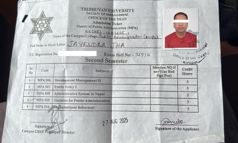 झाको एमपिएको प्रवेश पत्र ।