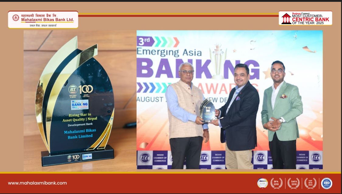महालक्ष्मी विकास बैंकले सम्पती संरचना, प्रभावकारी परिचालन तथा गुणस्तरीय सुधारमा गरेको उल्लेखनीय योगदानका आधारमा अवार्ड प्राप्त गरेको हो । यसले अन्तर्राष्ट्रिय क्षेत्रमा बैंकको पहिचानलाई थप मजबुत बनाउने बैंकको विश्वास छ ।