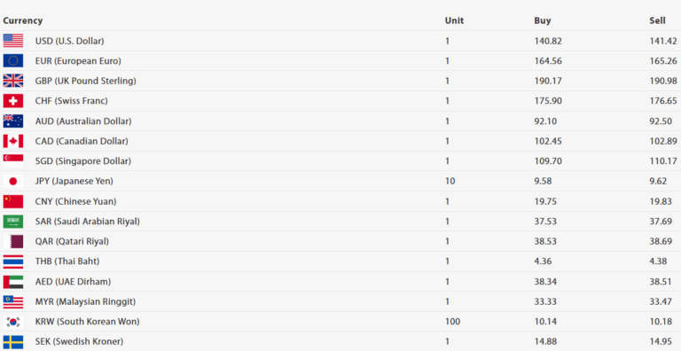 जापानी येन १० को खरिददर नौ रुपैयाँ ५८ पैसा र बिक्रीदर नौ रुपैयाँ ६२ पैसा, चिनियाँ युआन एकको खरिददर १९ रुपैयाँ ७५ पैसा र बिक्रीदर १९ रुपैयाँ ८३ पैसा, साउदी अरेबियन रियाल एकको खरिददर ३७ रुपैयाँ ५३ पैसा र बिक्रीदर ३७ रुपैयाँ ६९ पैसा, कतारी रियाल एकको खरिददर ३८ रुपैयाँ ५३ पैसा र बिक्रीदर ३८ रुपैयाँ ६९ पैसा कायम भएको छ ।
