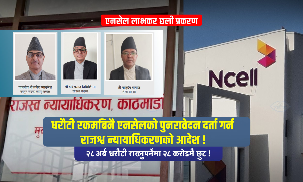 एनसेललाई राजश्व न्यायाधिकरणको साथ, आवश्यक धरौटी रकमबिनै पुनरावेदन दर्ता गर्न आदेश !