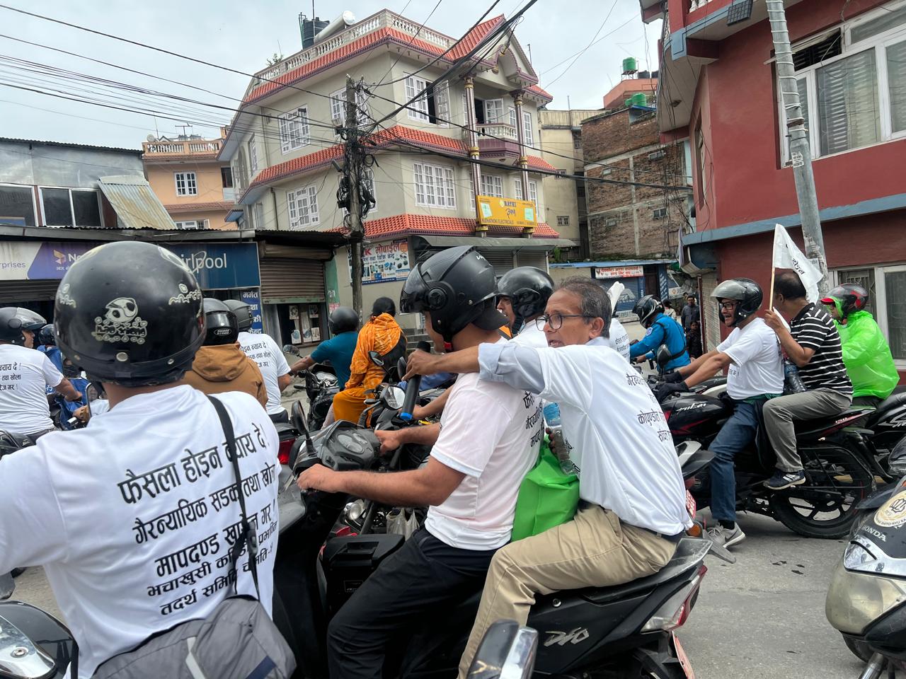 राजाराम तण्डुकारको नेतृत्वमा बृहत मोटरसाइकल र्याली गरी सरकारलाई त्यस विषयमा सचेत गराइएको हो । साथै उनले सरकारले आफूहरुको माग समयमा नै सम्बोधन नगरे आगामी दिनमा आन्दोलनलाई थप चर्काउने चेतावनी समेत दिइएको छ ।