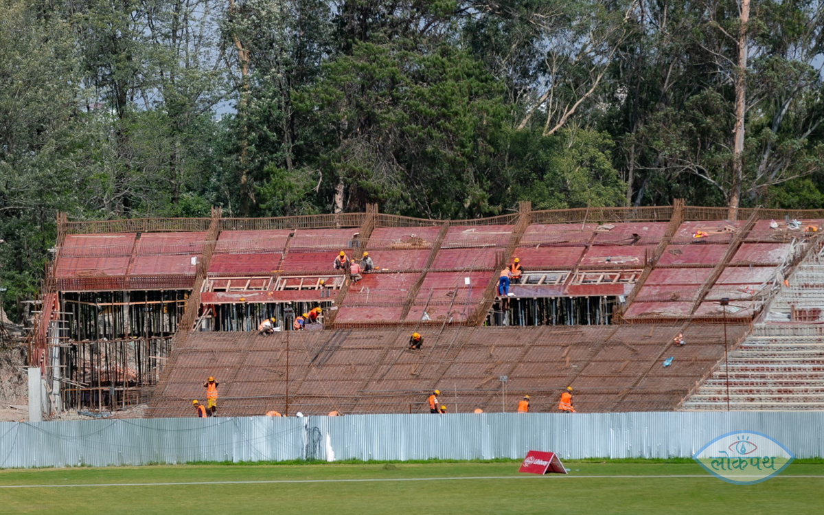 त्रिवि क्रिकेट मैदान निरीक्षण : प्यारापिट निर्माण भदौ मसान्तसम्म पूरा हुने, फ्लड लाइट जडान ढिला हुने