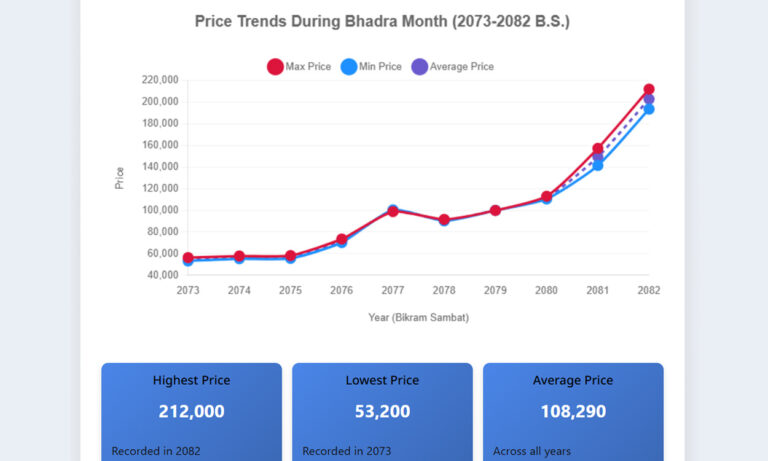 Visualizing the maximum and minimum prices during the month of Bhadra over the last 10 years