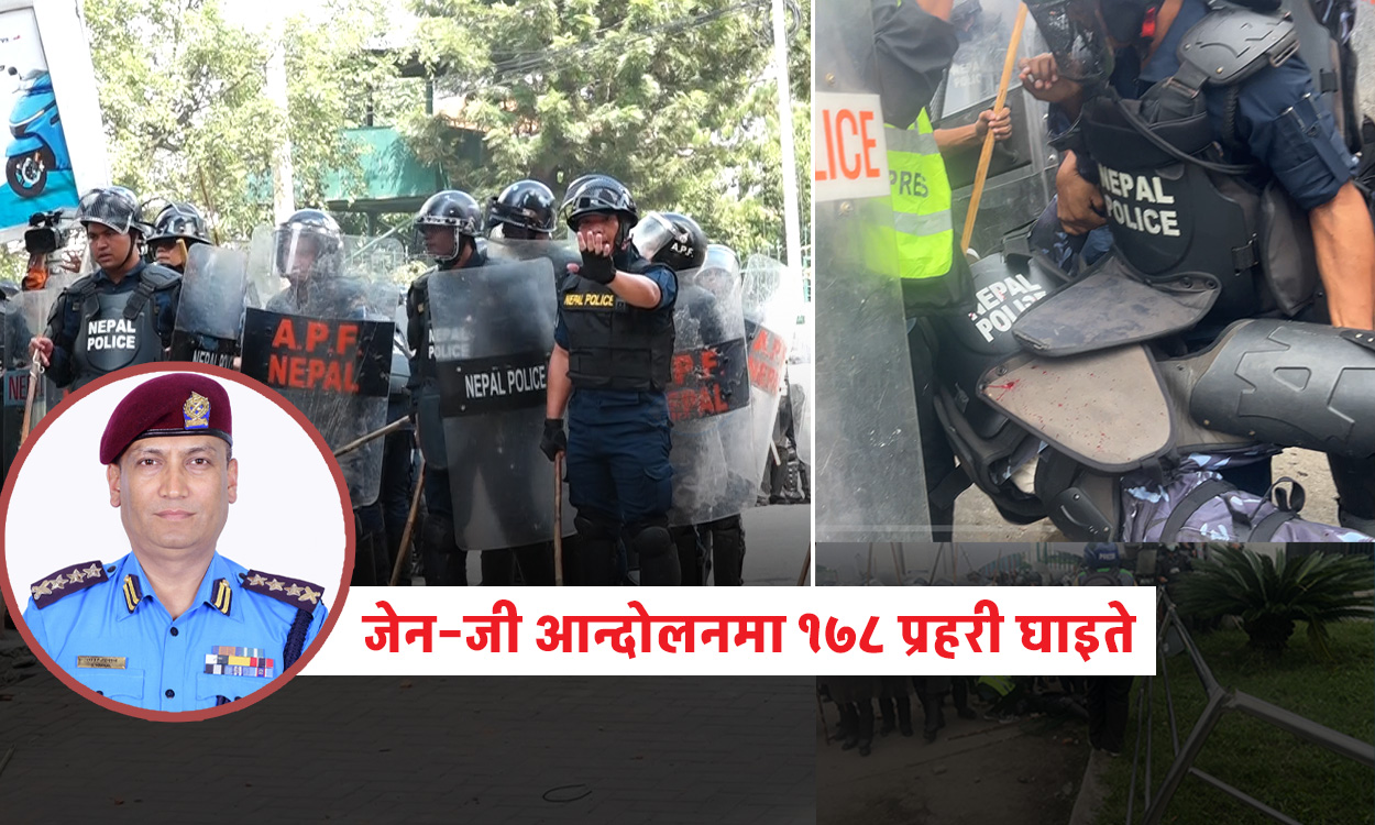 काठमाडौं । सोमबार काठमाडौंमा भएको जेन–जी पुस्ताको प्रदर्शनमा १७८ जना प्रहरी घाइते भएका छन् । ठुलो सङ्ख्यामा प्रहरी घाइते भएको भए पनि गम्भीर घाइते भने कोही पनि नरहेको प्रहरीले जनाएको छ ।