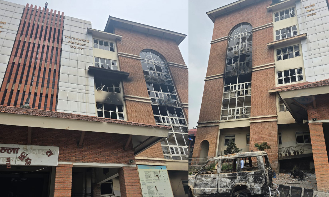 काठमाडौं । मंगलबार प्रर्दशनकारीले गरेको तोडफोड र आगजनीपछि जिल्ला प्रशासन कार्यालय काठमाडौं र जिल्ला अदालत काठमाडौं ध्वस्त बनेका छन् ।