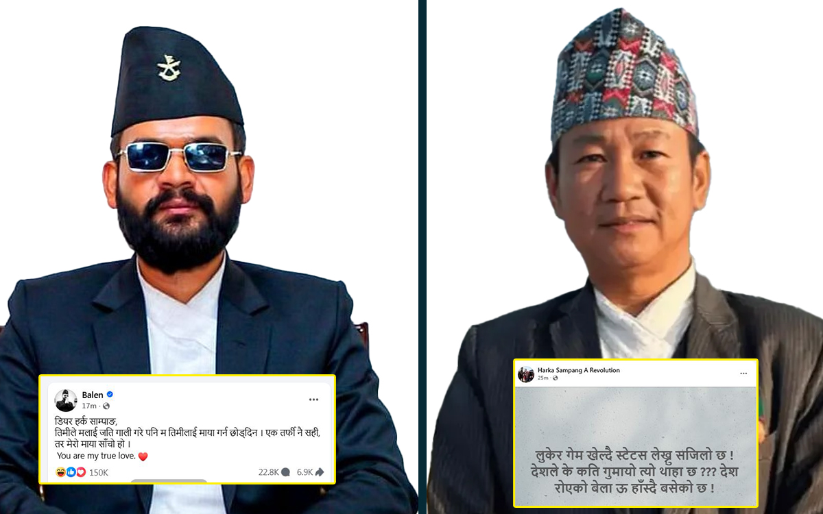 सामाजिक सञ्जालमार्फत बालेन्द्रको स्टाटसलाई प्रतिवाद गर्दै साम्पाङले लुकेर मात्र खेल्ने शैलीको आरोप लगाएका छन् ।
