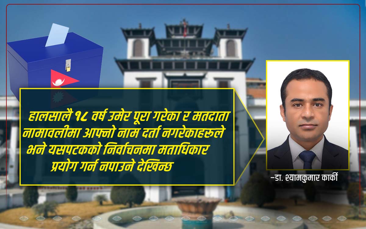 पछिल्लो समय कतिपय खराब व्यवस्था वा शैलीलाई बचाइ राख्नका लागि केही राजनीतिक दलहरू तथा पुरातनवादी नेताहरू सक्रिय देखिन्छन् । यस्तो अवस्थालाई परास्त गर्नका लागि नवमतदाताहरूको मतदाता नामावलीमा नाम दर्ता गर्न पाउने कुराको सुनिश्चितता गर्नु जरुरी छ । यसका लागि सरकार र निर्वाचन आयोगले अविलम्ब मतदाता नामावली संकलनको प्रक्रिया सुरु गर्नका लागि आवश्यक नीतिगत तथा कानुनी प्रबन्ध गरी नवमतदाताहरूको मतदानको अधिकारलाई सुनिश्चित गर्नुपर्ने देखिन्छ ।