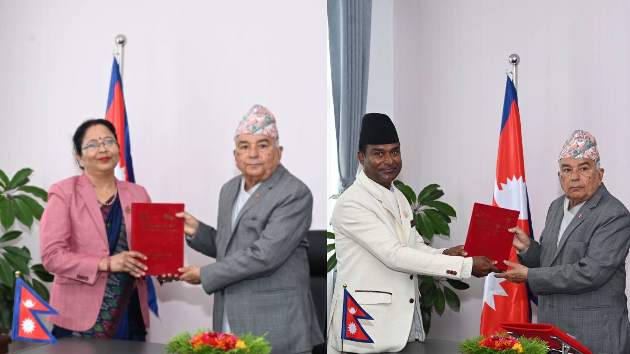 मधेसी आयोगका कार्यवाहक अध्यक्ष जीवछ साह र राष्ट्रिय महिला आयोगकी अध्यक्ष कमला पराजुलीले आ–आफ्नो आयोगको वार्षिक प्रतिवेदन राष्ट्रपति पौडेलसमक्ष बुझाउनु भएको थियो ।