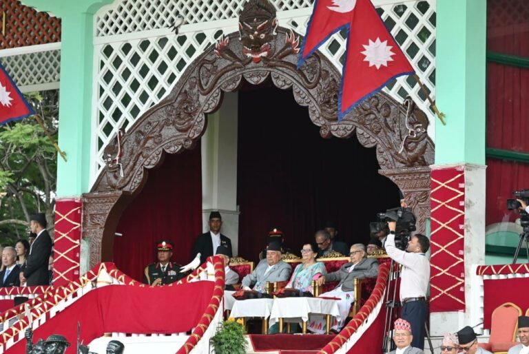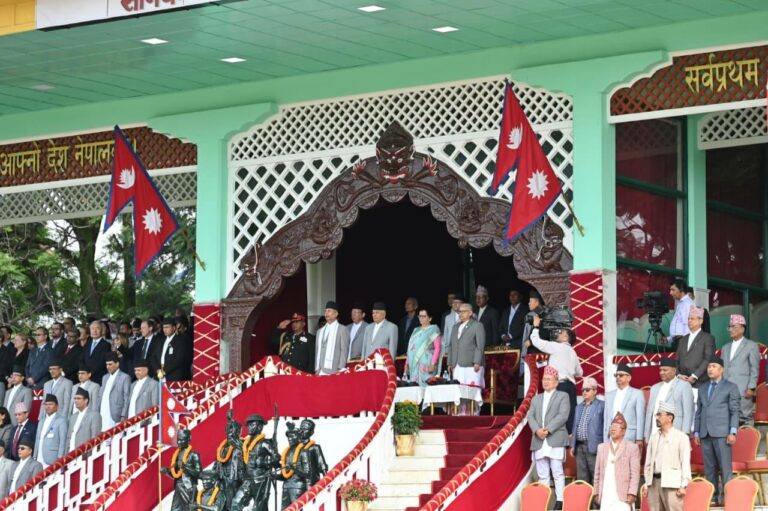 काठमाडौं । काठमाडौंको सैनिक मञ्च टुँडिखेलमा संविधान दिवस मनाइएको छ ।  शुक्रबार बिहान टुँडिखेलमा एक समारोहकाबिच सरकारले संविधान दिवस मनाएको हो ।