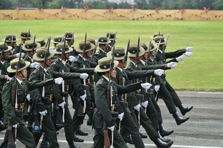 समारोहमा नेपाली सेनाको टोलीले शान्तिको प्रतिक परेवा उडाएका छन् । सुरक्षा निकायका विभिन्न समूहहरूले मार्च पास गरेका छन् । सुरक्षा निकायहरूले ब्याण्ड प्रदर्शन समेत गरेका छन् ।