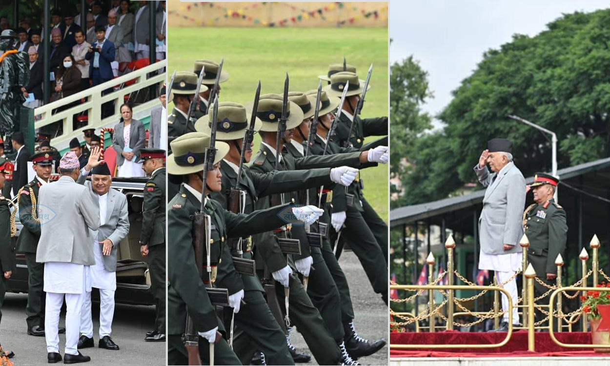 समारोहमा नेपाली सेनाको टोलीले शान्तिको प्रतिक परेवा उडाएका छन् । सुरक्षा निकायका विभिन्न समूहहरूले मार्च पास गरेका छन् । सुरक्षा निकायहरूले ब्याण्ड प्रदर्शन समेत गरेका छन् ।