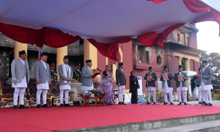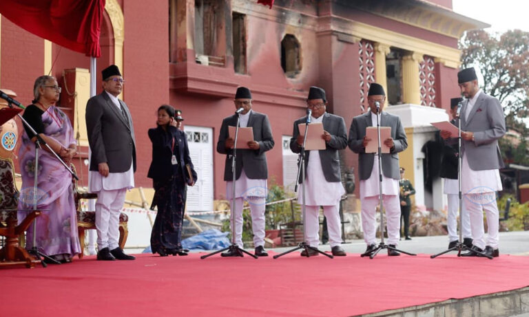 काठमाडौं । नवनियुक्त ४ मन्त्रीहरुले शपथग्रहण गरेका छन् । राष्ट्रपति भवन शीतल निवासमा आयोजित एक समारोहकाबिच शपथग्रहण गरेका हुन् ।