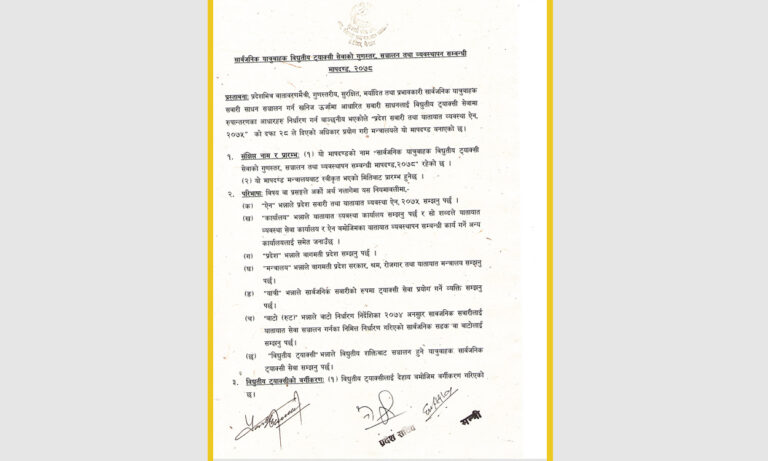 यही मापदण्डलाई देखाएर अहिले बागमती प्रदेश सरकारले ट्याक्सी दर्तासम्बन्धी मापदण्डमा परिवर्तन गर्न खोजिरहेको छ र यसमा यातायात मन्त्री जयराम थापा पूरै बल लगाएर लागिपरेका छन् ।