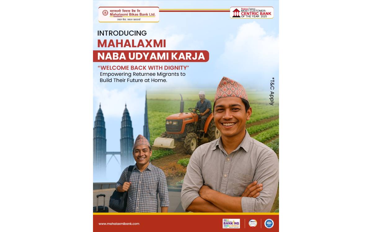 काठमाडौं । महालक्ष्मी विकास बैंकद्वारा वैदेशिक रोजगारबाट फर्किएका व्यक्तिहरुलाई सफल उद्यमी बनाउने उद्देश्यका साथ आकर्षक ब्याजदरमा नव उद्यम कर्जा सञ्चालनमा ल्याएको छ ।