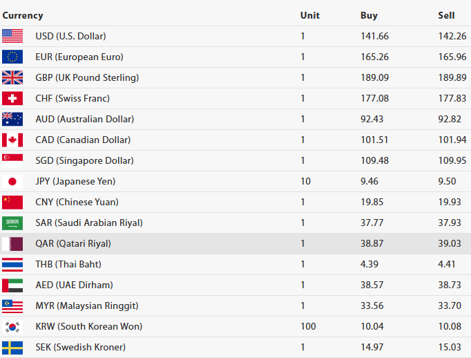 राष्ट्र बैंकले हङकङ डलर एकको खरिददर १८ रुपैयाँ २१ पैसा र बिक्रीदर १८ रुपैयाँ २९ पैसा, कुवेती दिनार एकको खरिददर ४६३ रुपैयाँ २७ पैसा र बिक्रीदर ४६५ रुपैयाँ २४ पैसा, बहराइन दिनार एकको खरिददर ३७५ रुपैयाँ ७२ पैसा र बिक्रीदर ३७७ रुपैयाँ ३१ पैसा, ओमनी रियाल एकको खरिददर ३६७ रुपैयाँ ९३ पैसा र बिक्रीदर ३६९ रुपैयाँ ४९ पैसा रहेको छ । भारतीय रुपैयाँ एक सयको खरिददर १६० रुपैयाँ र बिक्रीदर १६० रुपैयाँ १५ पैसा तोकेको छ ।